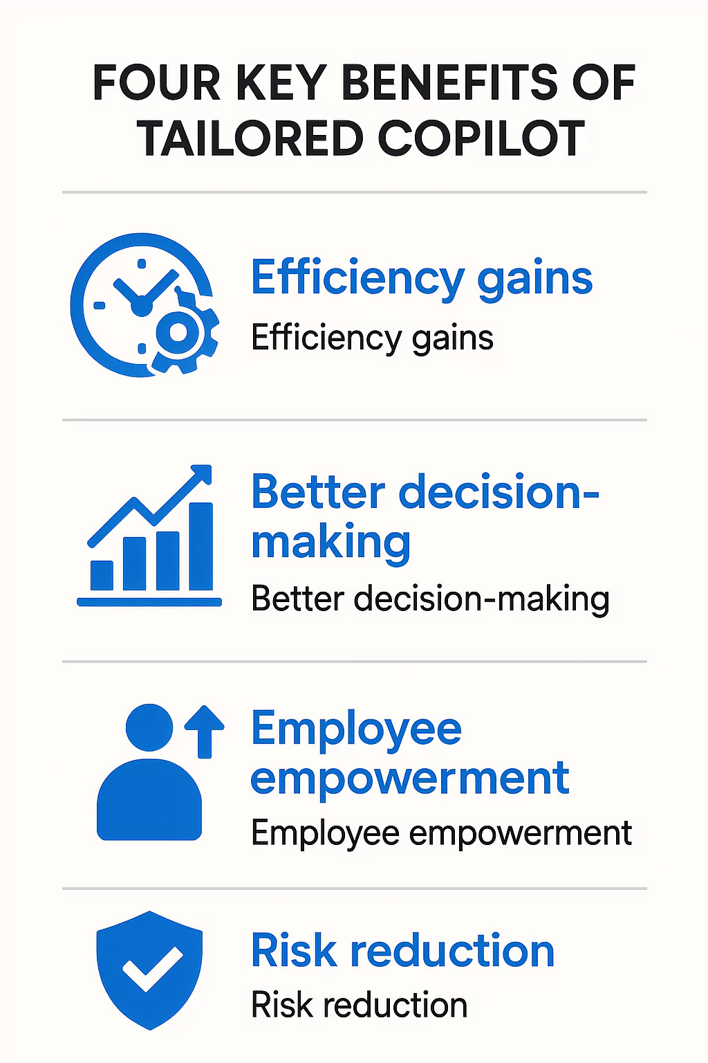 By personalising Copilot in this way, companies can move from generic task automation to contextualised assistance that reflects how their teams actually operate. Synonyms such as personalised, contextual, and organisation-specific capture the essence of this shift.